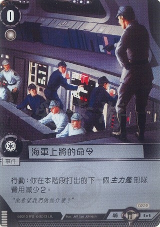 说明行动:你在本阶段打出的下一个主力舰部队费用减少2。