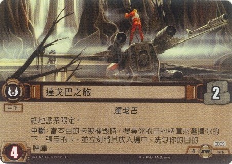 中断:当本目的卡被摧毁时,搜寻你的目的牌库来选择你的下一张目的卡,并立刻将其放入场中。洗匀你的目的牌库。