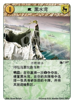 响应:在你赢得一次权力家族争夺后,横置黑水湾,在你的弃牌堆中选择一张具有暗影饰语的卡牌,并将其放进暗影区。
