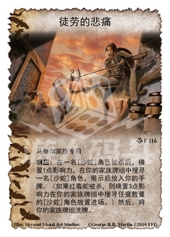 :在一名[沙蛇]角色被杀后,横置1点影响力,在你的家族牌组中搜寻一名[沙蛇]角色,展示后放入你的手牌。(如果红毒蛇被杀,则横置3点影响力在你的家族牌组中搜寻任意数量的[沙蛇]角色放置进场。)然后,将你的家族牌组洗牌。